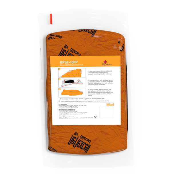 The Safeguard Medical Blizzard EMS Blanket is a high-performance thermal blanket designed specifically for emergency medical services to prevent and treat hypothermia in trauma patients. Utilizing patented Reflexcell™ technology, the blanket offers superior insulation, wind and water resistance, and compact packaging for rapid deployment. The EMS version is designed for quick application in high-pressure environments, such as ambulances, helicopters, and field trauma scenarios.