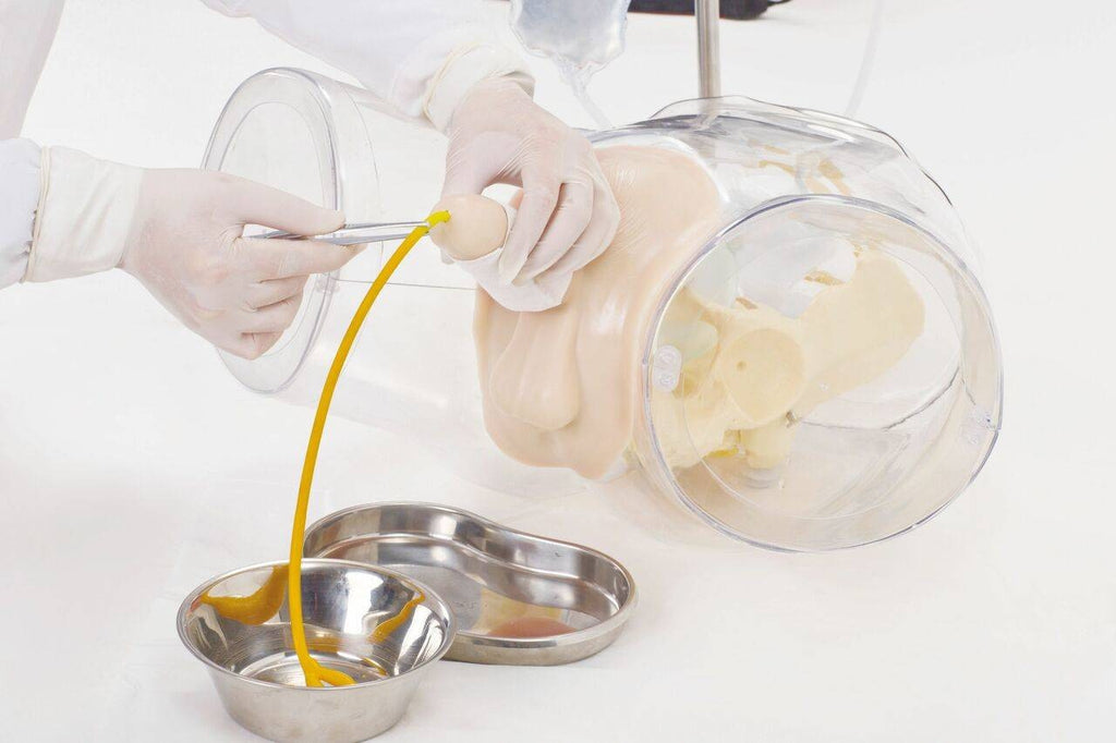 Please note: Catheter must be lubricated for proper insertion. Some water may appear in the model – this is normal.