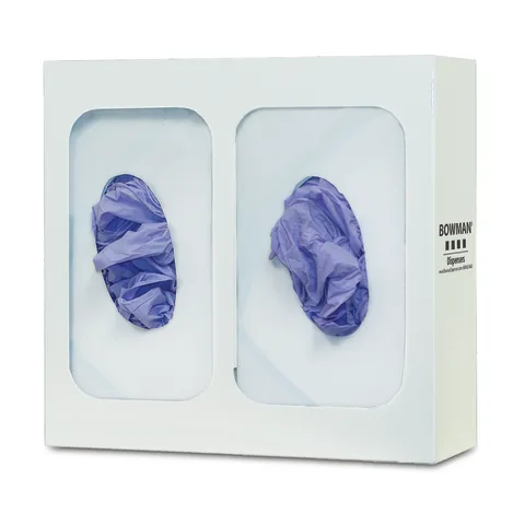 Holds one standard glove box Durable white steel construction Wall-mountable for easy access Hygienic design to prevent contamination