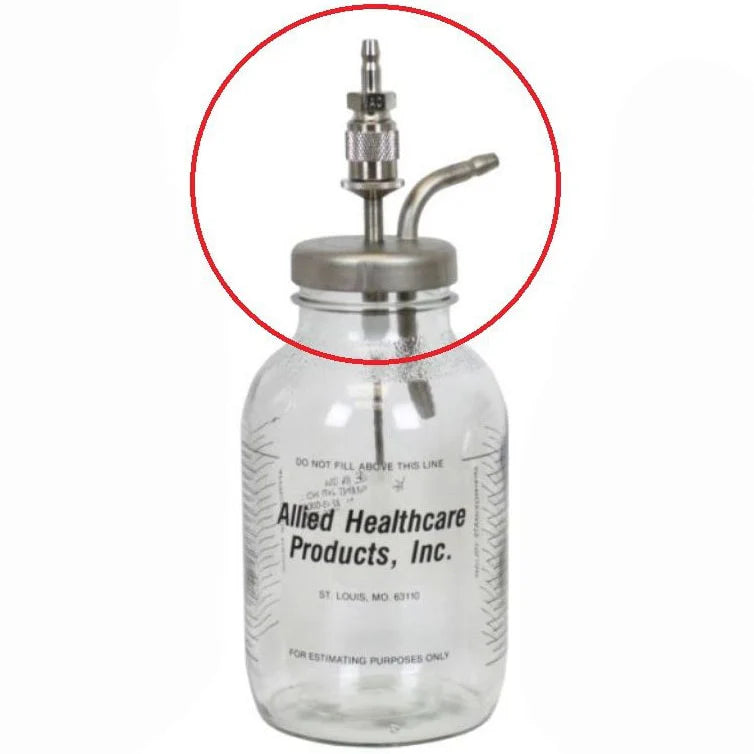 El conjunto de tapa y flotador de metal es para el frasco de recolección de policarbonato de 2800 ml. Está diseñado para ayudar a evitar el arrastre de líquido hacia la bomba y se adapta a todos los sistemas de tuberías estándar de los hospitales. Incluye un puerto para pacientes del hospital para ayudar a evitar que se doble el tubo de succión y una entrada de vacío para el vástago de la manguera.