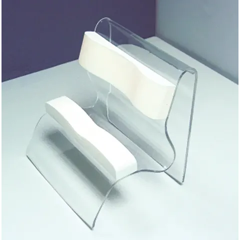Made of a clear 0.25" acrylic with two coated foam pads, the Coronal Head Holder allows the patient to rest comfortably in the prone position. The pads are cleanable, and since they attach with double sided tape, they can be easily replaced when worn. The Coronal Head Holder is compatible with all CT tables including Toshiba, Siemens, GE and Philips.
