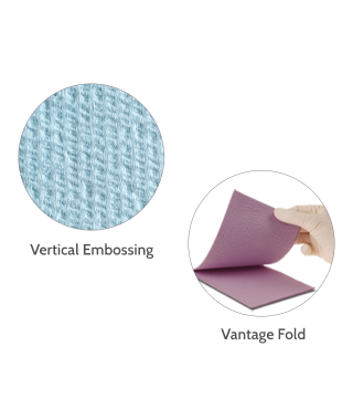 • Provides the often imitated, but never duplicated Crosstex embossing pattern, which allows moisture to flow horizontally across the towel, protecting patient's clothing.