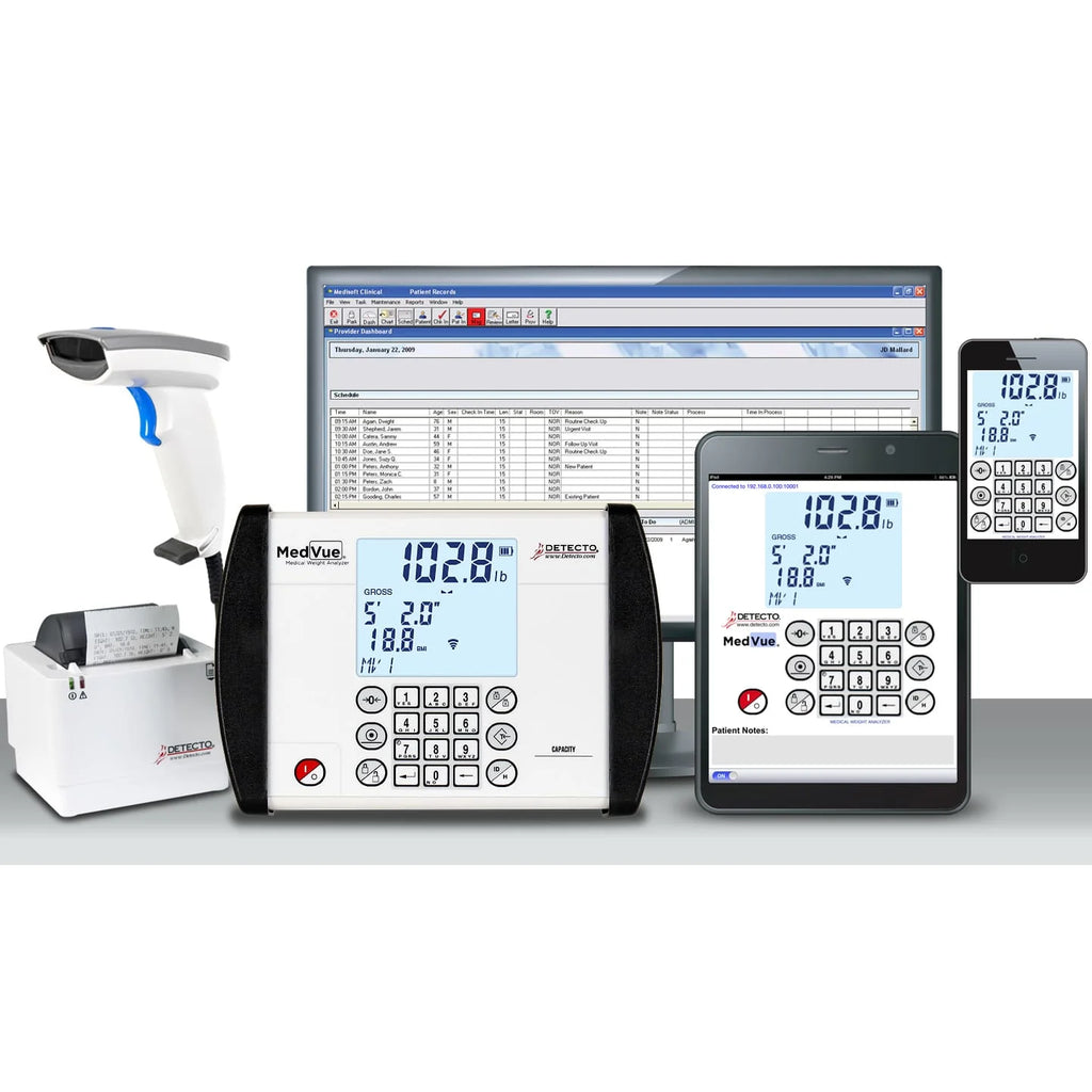 The Detecto MedVue Medical Weight Analyzer works with select scales (including wheelchair, bariatric, and stretcher scales) to make them EMR/EHR capable.