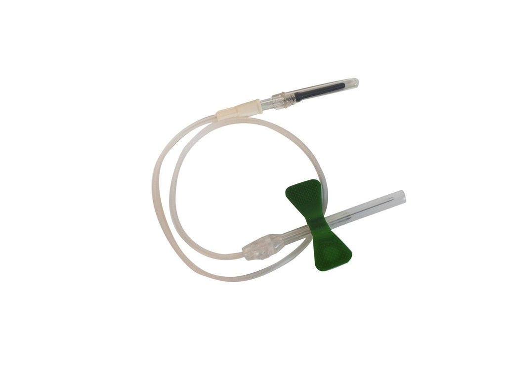 • Winged blood-collection needle bonded to transparent tubing with luer connector
