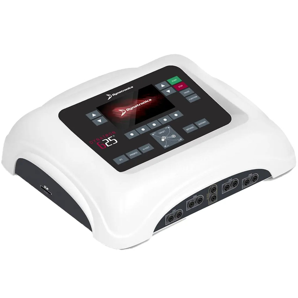 The Dynatronics Dynatron 625 5 Channel Stim Unit allows fully-independent treatment setups including Interferential, Premodulated, Biphasic, High Voltage pulsed stimulation, and Russian stimulation using any available electrotherapy channel.
