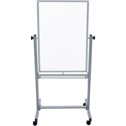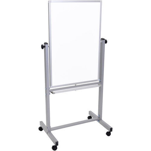 The Luxor Mobile Magnetic Reversible Whiteboard is a versatile 24" × 36" double-sided magnetic board on wheels, designed for classrooms, offices, and collaborative workspaces. It features a durable painted steel writing surface that resists ghosting, and a chrome-finished aluminum frame for professional styling. The board rotates 360° and locks securely into place, while four casters, two with locking brakes, enable smooth and stable mobility. A full-length marker and eraser tray adds convenience, and assembly is required.