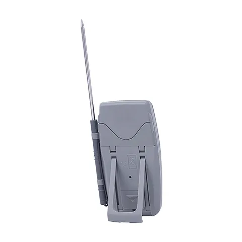 Pocket-size thermometer features handy cable storage and probe brackets for portability. Efficient alarm continues to sound every minute until temperature returns to non-alarm conditions. Intuitive, never-read-the-instructions operation allows every user to record identical results.