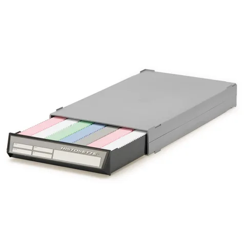 • One drawer holds up to 250 tissue cassettes or 165 embedding rings