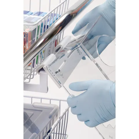 • Minimize cross-contamination with other basket contents by placing sharps containers outside the cart