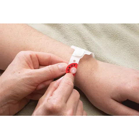 The Marketlab Alert Wristband Snaps are designed to securely fasten patient alert wristbands, ensuring proper identification and safety in healthcare environments. These snaps allow for quick and easy attachment or replacement of wristbands, supporting infection control and patient management protocols.
