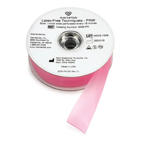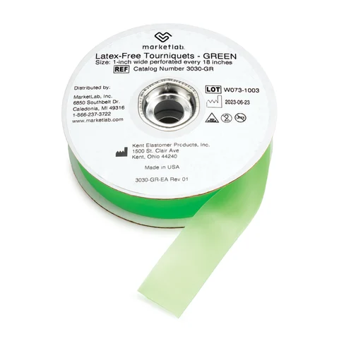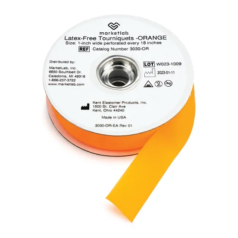 Keep clean tourniquets easily accessible whenever needed with convenient Marketlab Tourniquet Rolls. These high-quality tourniquets are made in the USA and notched every 18" for easy tear-off from the roll. Each roll holds approximately 25 tourniquets.