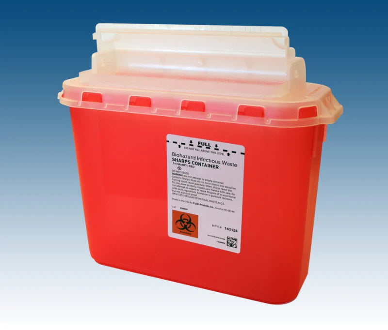 Plasti-Products-143154 Biohazard Sharps Disposal Container, Red (5.4 Quarter) 20/Case