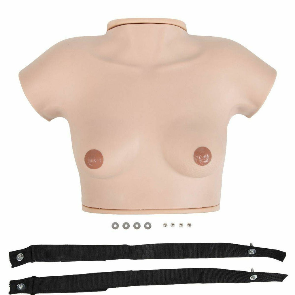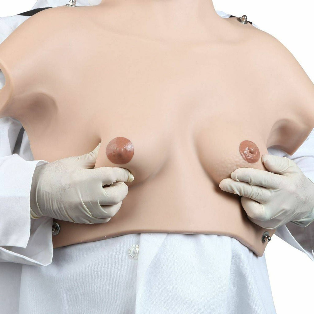 Demonstrate realistic self-examination using this natural casting of a female upper body with medium sized breasts. It can easily be worn in order to better train and practice breast selfexamination.