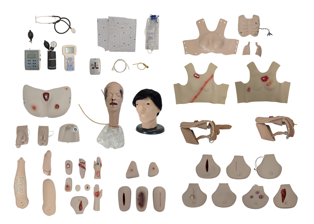 This manikin is built to handle diverse educational needs — from routine nursing care to complex trauma interventions. Learners can practice airway management, tracheostomy care, suturing, IV access, and wound care with lifelike tactile feedback. Multiple trauma modules replicate realistic injuries such as fractures, amputations, and lacerations, helping students build critical assessment and treatment skills under pressure.