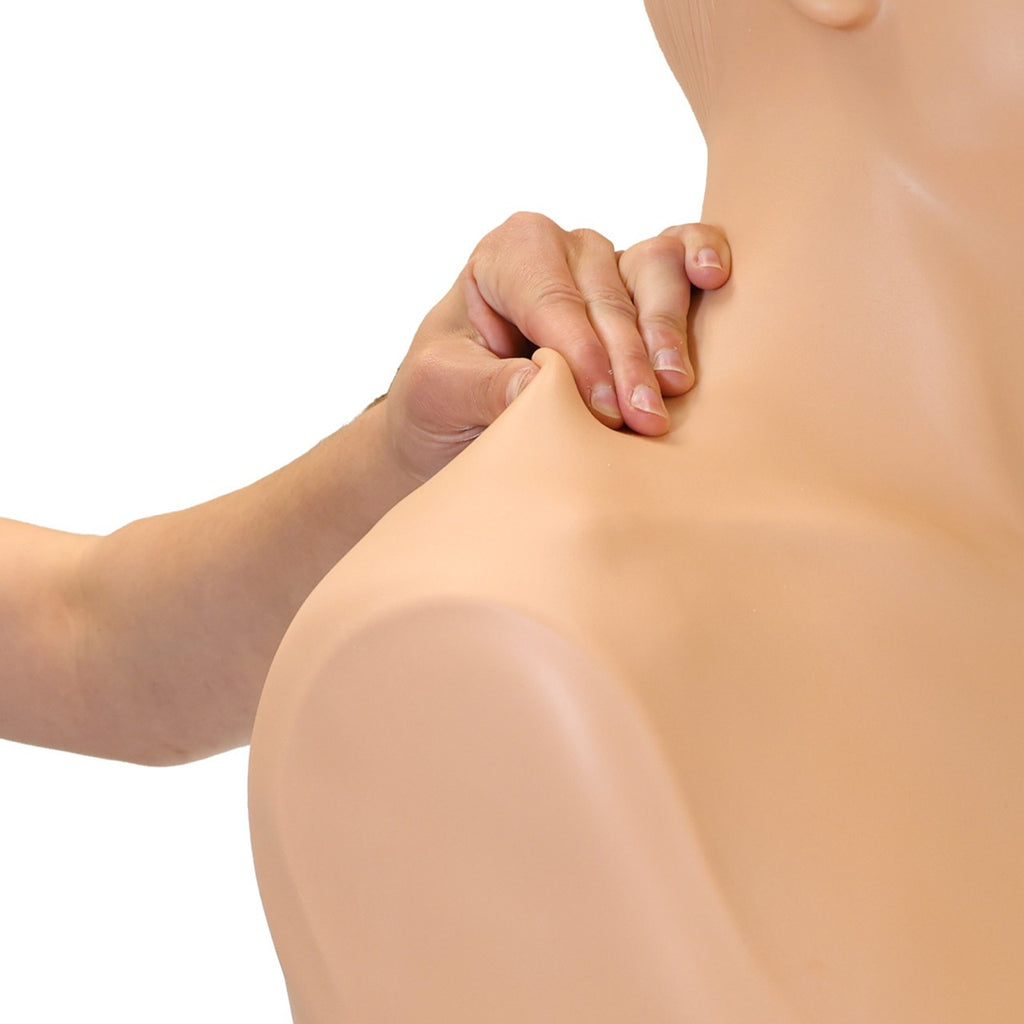 This simulator is crafted to support the development of essential clinical examination techniques. Users can practice thyroid palpation in both front and back positions, learning to detect asymmetry, nodules, or enlargement. The simulator includes a variety of replaceable thyroid models, enabling repeated and diverse case practice. It's an ideal tool for instruction on proper hand positioning, assessment technique, and communication with patients during neck exams.