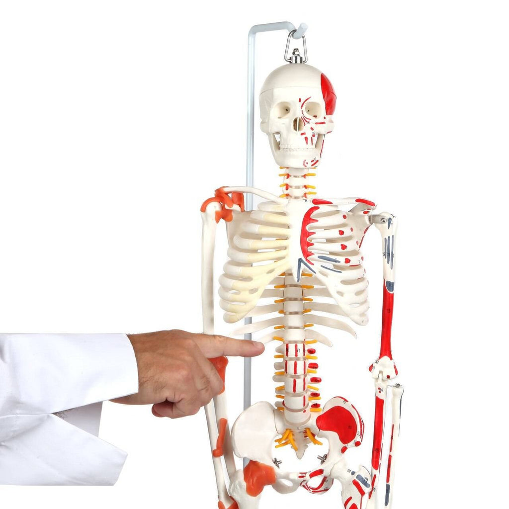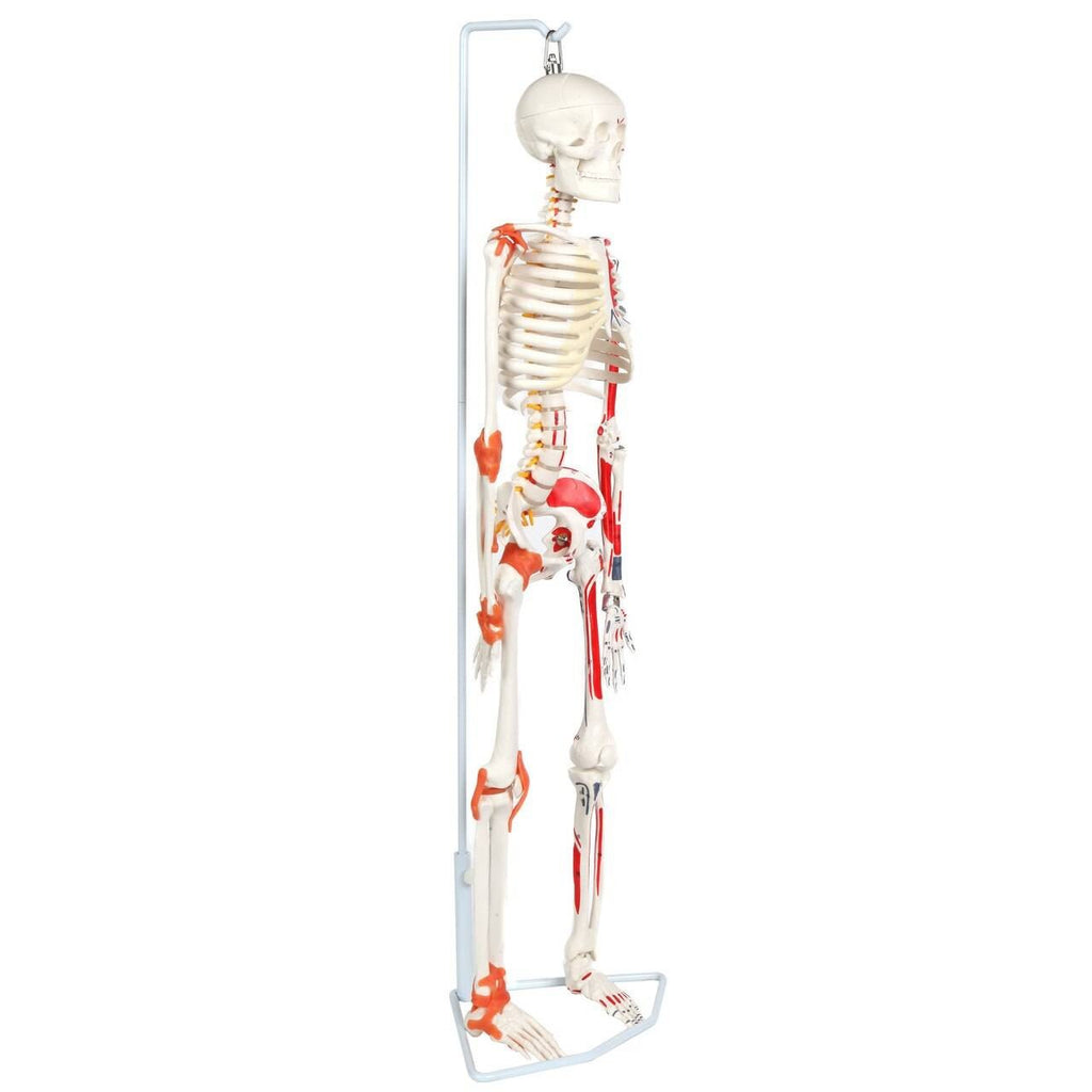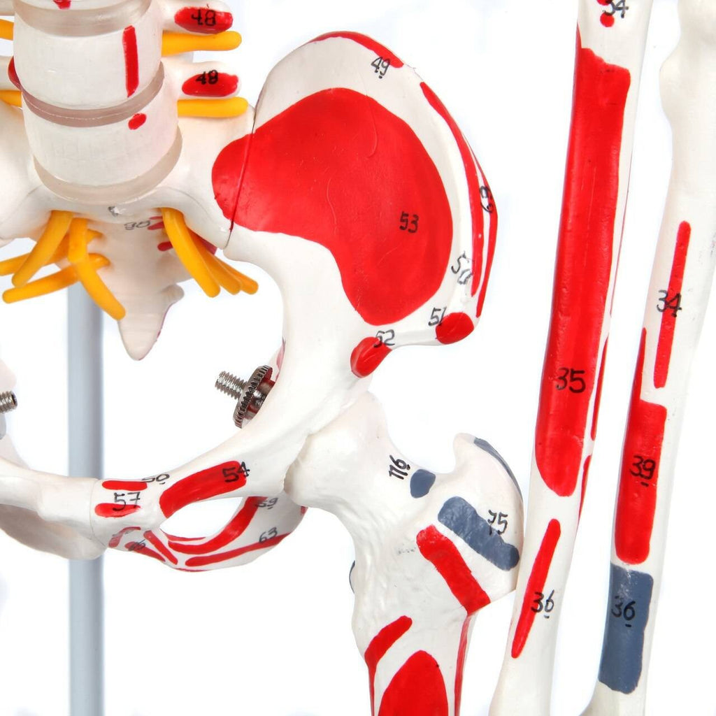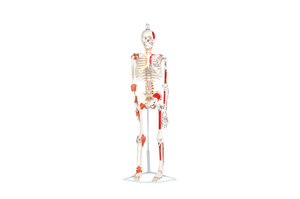 This model is more than just a skeleton—it's a dynamic learning tool that illustrates how bones, ligaments, and muscles interact. The visible ligaments and painted muscle insertion/origin points give students a clearer picture of biomechanical relationships. It’s perfect for explaining movement, joint function, and common injury sites. Ideal for physical therapy programs, sports medicine, kinesiology, and anatomy education.