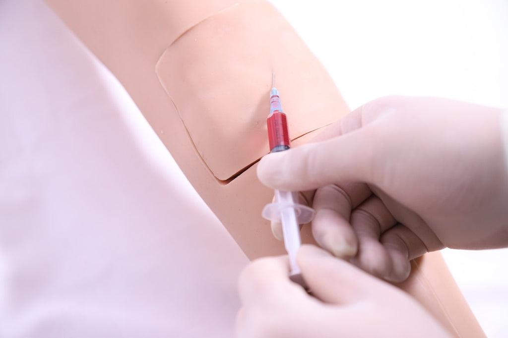 This advanced simulator provides a reliable training solution for students learning venipuncture, IV insertion, and infusion setup. Learners can palpate veins, perform needle insertions, and observe fluid flashback when placement is successful. The self-sealing skin and veins ensure extended use, while the simulated blood flow system mimics real conditions during IV administration. It’s a perfect fit for nursing, phlebotomy, and emergency medical training programs focused on accuracy and patient safety.