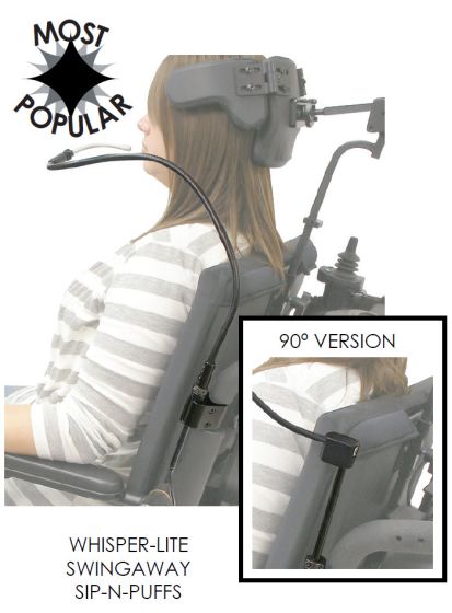 This sip-n-puff 24'' whisper-lite swingaway has the following characteristics:
