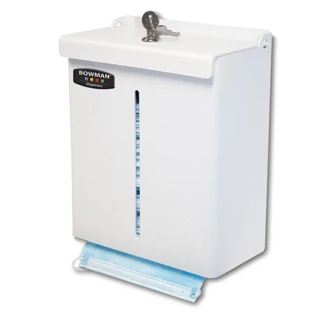 The Bowman Locking Bulk Face Mask Holder is designed to provide safe and convenient access to face masks in clinical and professional healthcare settings. Built with a secure locking system, it helps control distribution and prevents contamination. Its sturdy construction ensures long-term use, while the wall-mountable design saves space and keeps masks organized.