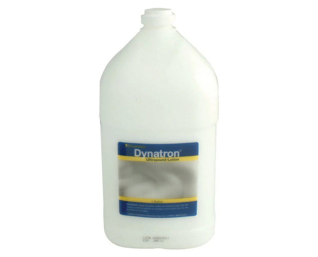 The Dynatronics Ultrasound Coupling Lotion is a reliable product used by healthcare professionals as a medium during therapeutic ultrasound procedures. This can effectively conduct ultrasonic waves from the device, and works as an alternative coupling agent to an ultrasound gel. This lotion is made to be hypoallergenic, bacteriostatic and water-soluble, and contains no salt, alcohol, fragrance, or dye, making it a reliable partner during ultrasound therapies. It has a light lemon scent, and can also be applied and massaged to the skin after a session. Each case comes in 4 containers of 1-gallon Ultrasound lotion, one (1) 8oz. Bottle, and syringe pump included.