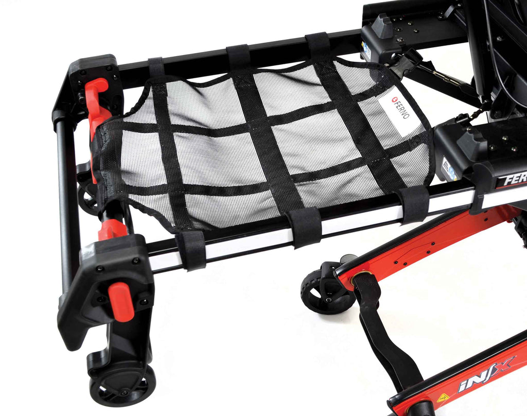 The Ferno-0822453 iNX Sof‑Net Head‑End Storage Flat — also known as the Storage Net Telescoping Frame — is a practical accessory designed to mount at the head end of a Ferno iNX Integrated Patient Transport & Loading System cot. It provides a convenient storage space for essential emergency supplies, medical gear, or patient personal items, helping keep the ambulance or emergency vehicle interior organized and efficient. The net incorporates a telescoping frame and hose‑loop fastening straps for easy attachment and expansion.