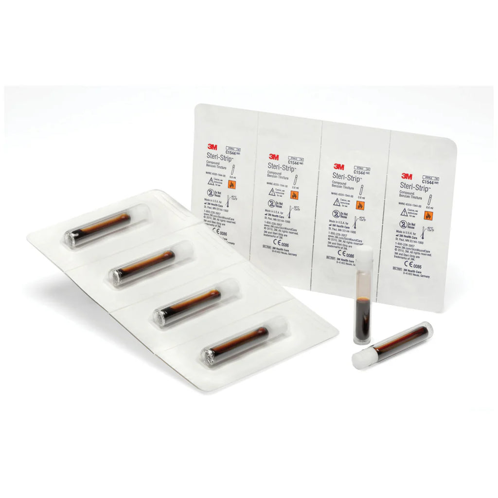 Solventum Benzoin Tincture comes in a 2/3cc single-use vial, ideal for enhancing the adhesion of bandages, tapes, and dressings. Used commonly in wound care and surgical prep, it forms a protective layer on the skin to reduce irritation and improve securement.