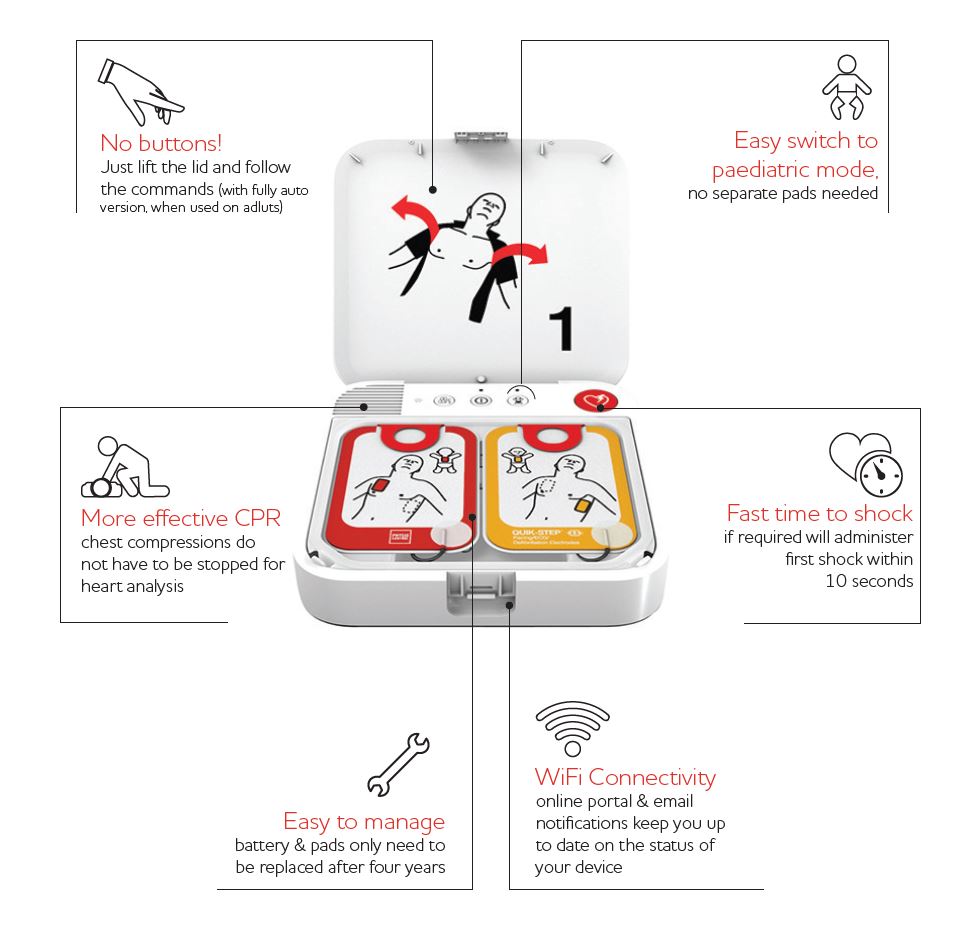The Physio-Control LIFEPAK® CR2 defibrillator combines best-in-class technology with the simplicity and portability required for use by the general public in a sudden cardiac arrest emergency. The LIFEPAK CR2 AED delivers advanced technology trusted by emergency medical professionals into the hands of anyone ready to save a life. The CR2 ensures rapid, efficient response during an SCA emergency with features designed for both lay rescuers and professionals, including lifesaving technology that even untrained AED users can rely on confidently.