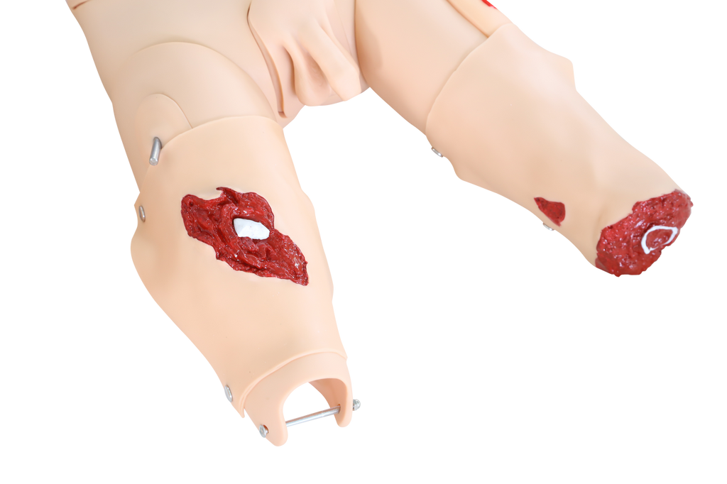 - Multiple bleeding sites and injury factors simulation with remote control including facial bleeding, neck bleeding, shoulder bleeding, forearm bleeding, palm bleeding, groin bleeding, calf bleeding, etc.