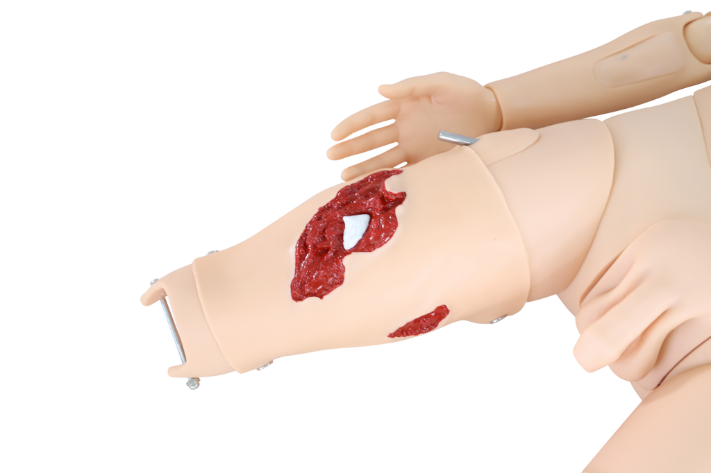 • Various wounds can be strapped on to increase the reality of trauma simulation