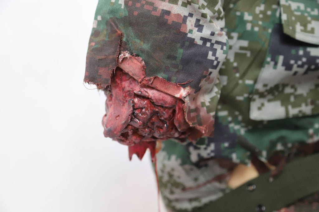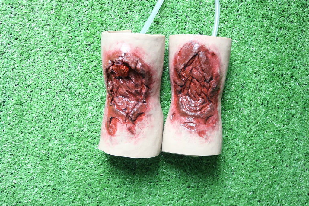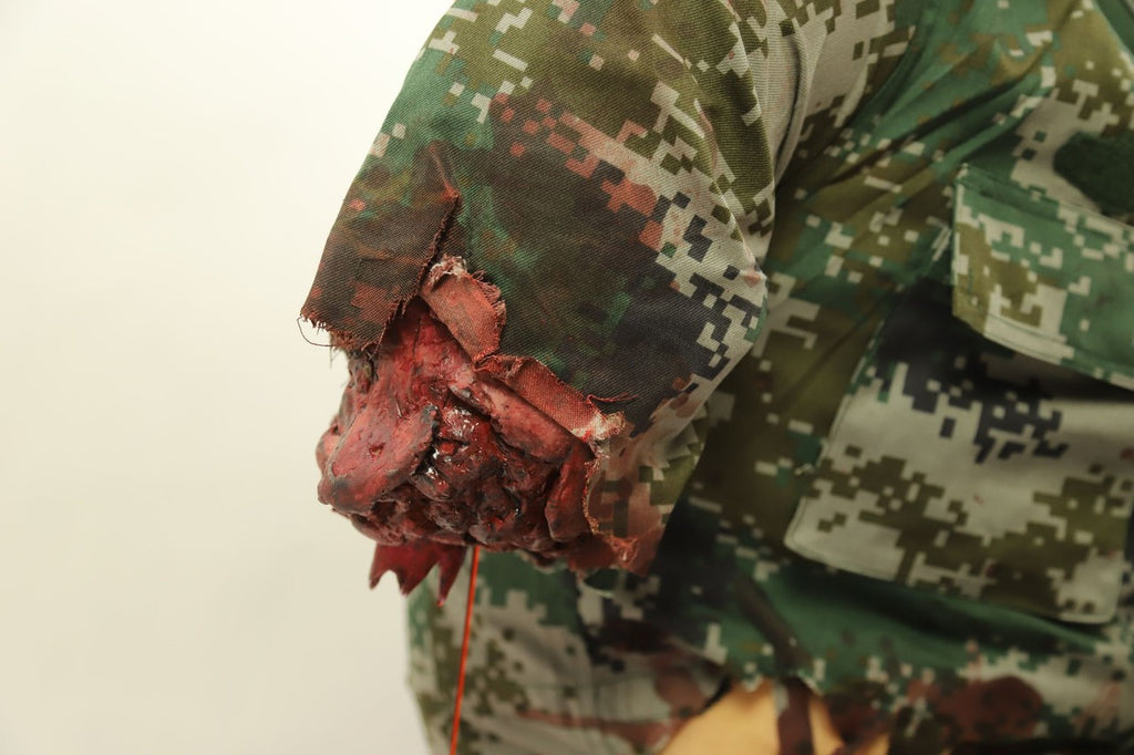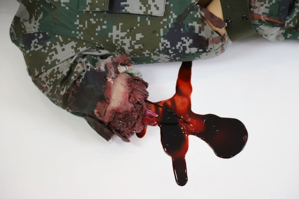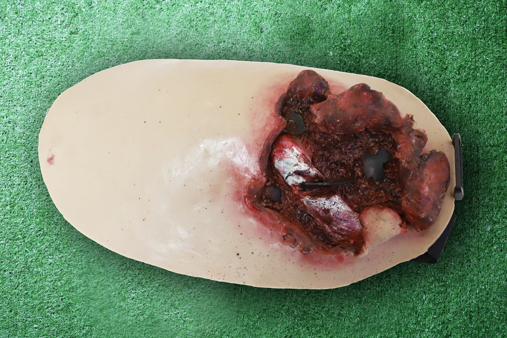 The wounds are form-fitted to be anatomically correct and can be worn by a human or a manikin. The kit can simulate severed limbs, exposed guts and more! This product is both durable and comfortable to wear.