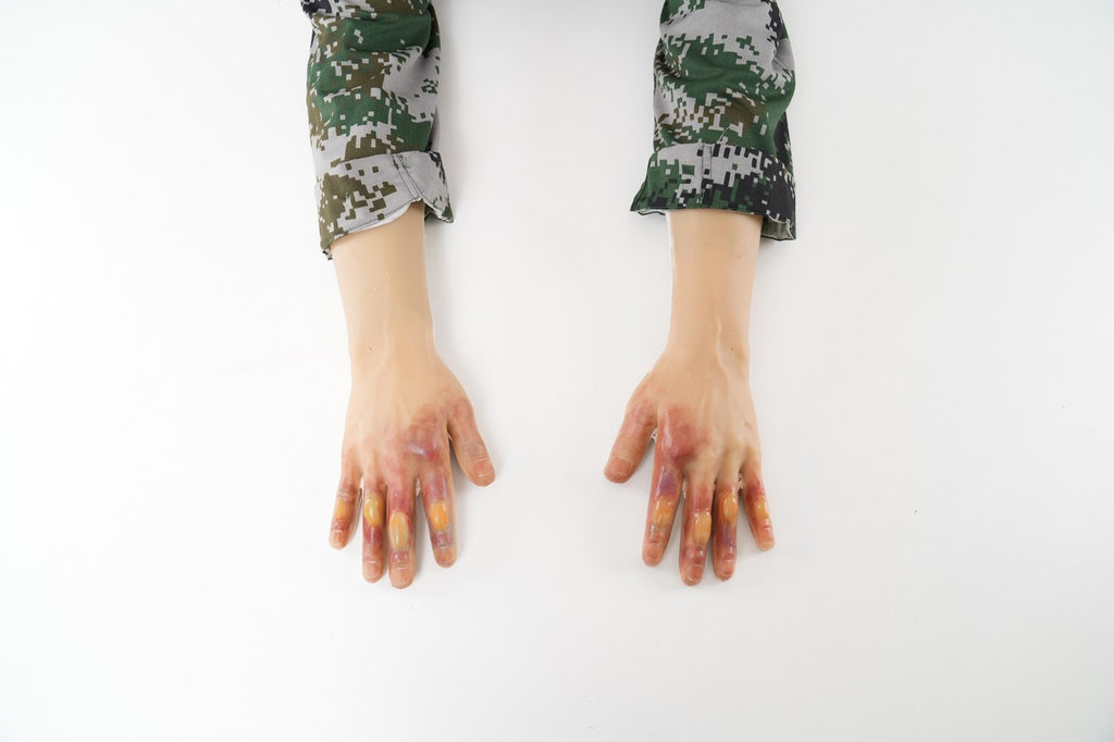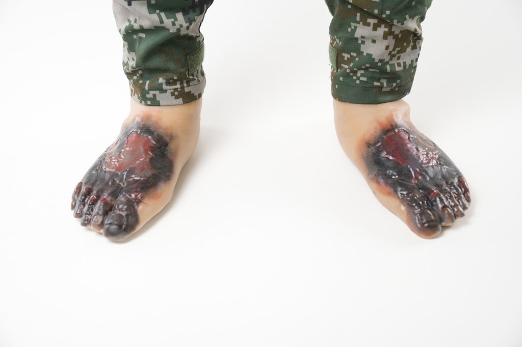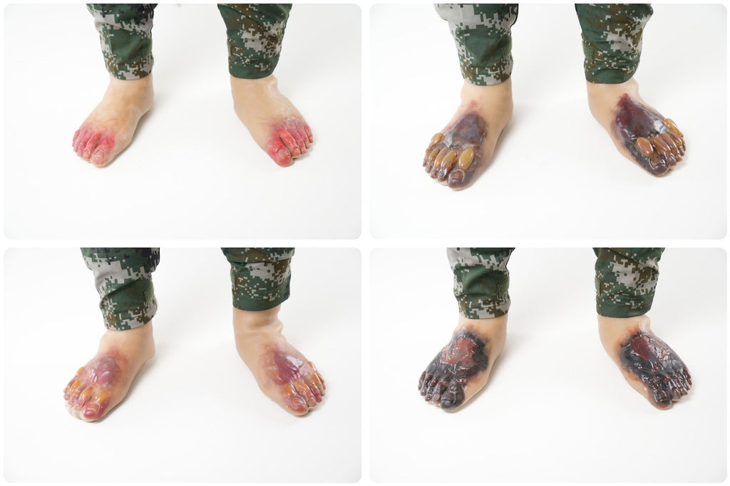 Wearable injuries are designed to give realistic tactile and visual feedback in a multitude of training environments. The wearable injuries boost your clinical presentation by giving injuries a three-dimensional look that accepts real medical interventions. Our rugged injury simulators are form-fitted to be anatomically correct, whether worn by a human or placed on a manikin. Frostbite quantification & grading assessment can be performed.