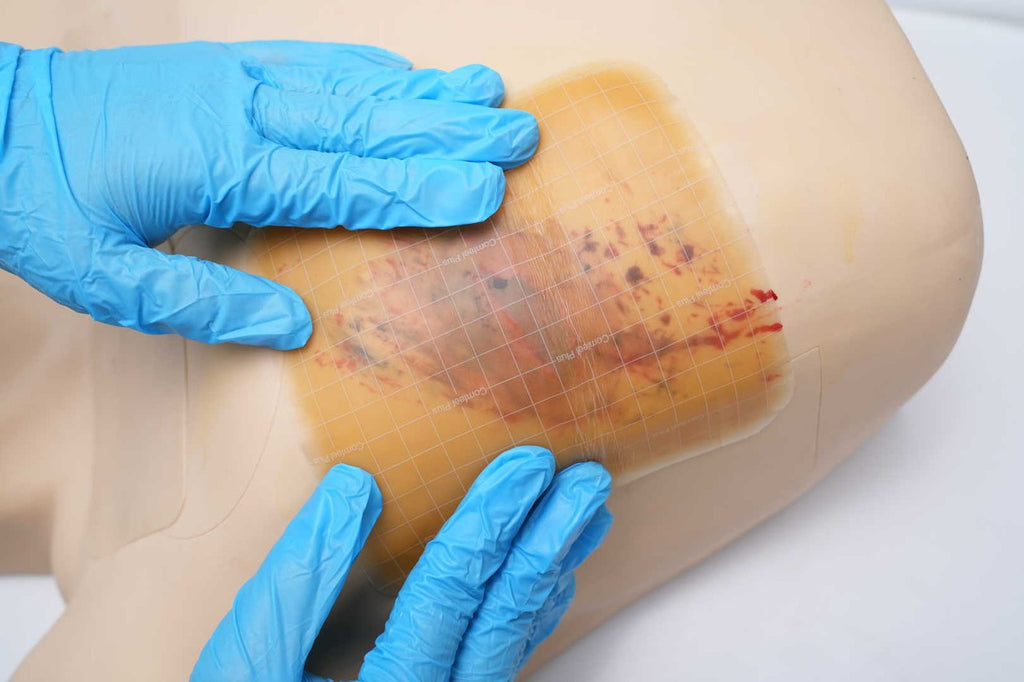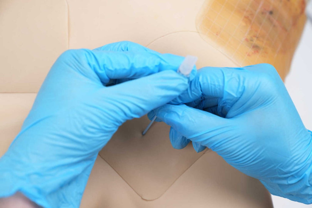 7. The left pad of the model accepts real needle to perform pneumothorax puncture.
